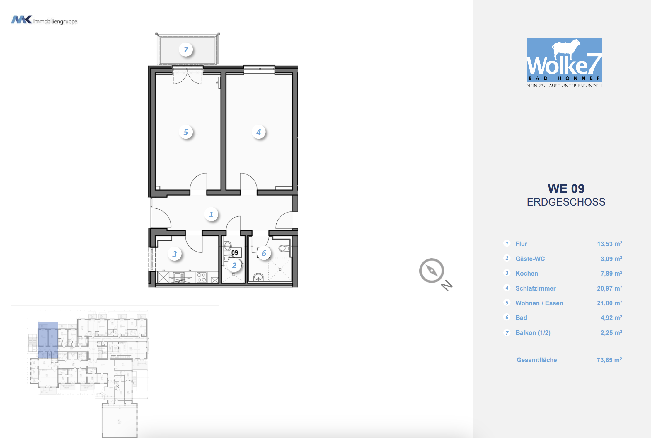 Alle Wohnungen der Wolke 7 Bad Honnef verfügen über folgende Ausstattungen